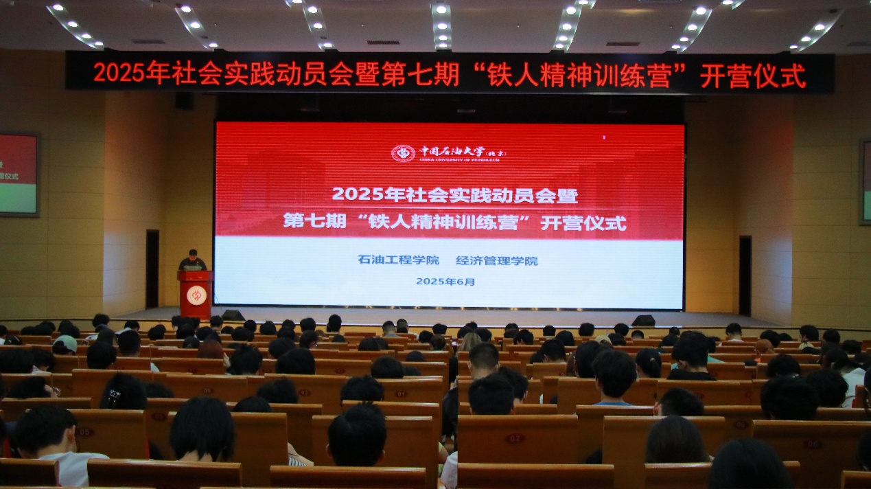 为深入推进习近平新时代中国特色社会主义思想入脑入心、入行入魂,扎实实施“新时代立德树人工程”,6月5日下午,中石大石油工程学院和经济管理学院在中油大厦三层报告厅举办2025年社会实践动员会暨第七期“铁人精神训练营”开营仪式。石油工程学院党委副书记刘东东、经济管理学院党委副书记胡锐、辅导员、指导教师和营员代表等400余人参加活动。