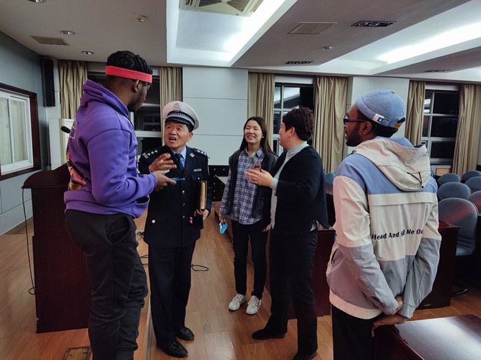 In order to further enhance the awareness of traffic safety laws and regulations and the awareness of safety and civilization among international students of China University of Petroleum (Beijing) and teach international students to care for lives, refuse to violate regulations, prevent road accidents, and build a safe campus, the College of International Education of China University of Petroleum (Beijing) specially invited the former Changping Traffic Detachment policeman, Police Officer Liang Shangli, a member of the Beijing North Vehicle Administration and Changping District’s Case Interpretation Team, gave lectures on traffic safety for international students in Conference Room 306 of the International Exchange Center.