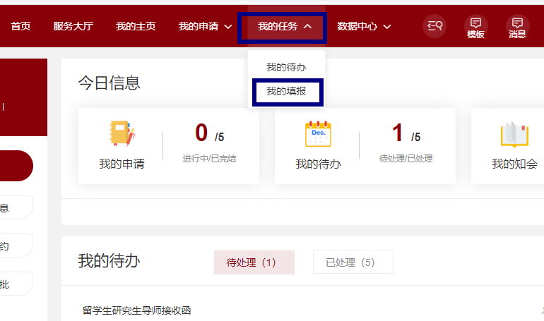 3.Then Click “我的填报(My reports)”in “我的任务(My tasks)”.