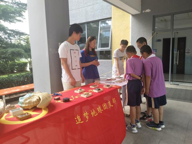 地质爱好者协会精心布置展台,带去了地球仪、岩石矿物标本、古生物标本、古生物模型、摩氏硬度计以及罗盘、放大镜、地质锤等实物展品。展台仿照地质博物馆一楼布局进行布置,首先让孩子们接触地球、了解地球,再以矿物、岩石、古生物的顺序让孩子们了解标本的形成机理极其特征,让孩子们在亲身感受形态各异的岩石矿物和生物化石,在学习中感受地学魅力。本次活动旨在传播和科普地质知识,提升附小学生的地质兴趣,扩展其知识面的同时丰富其第二课堂活动,活动受到学生的喜爱和附小教师的高度肯定。