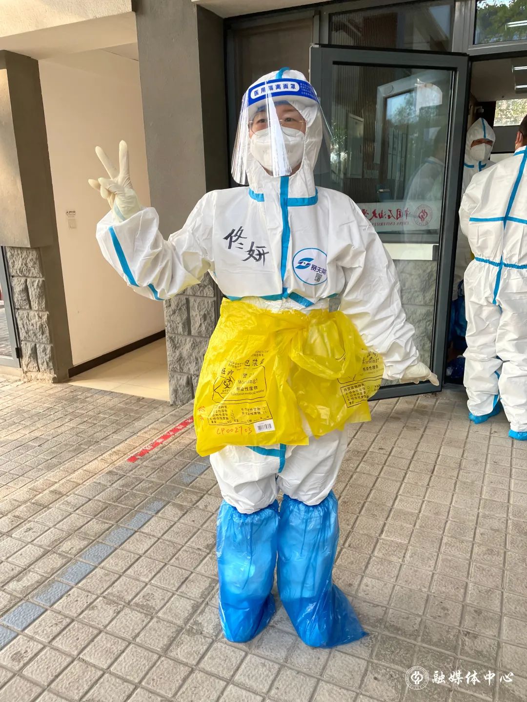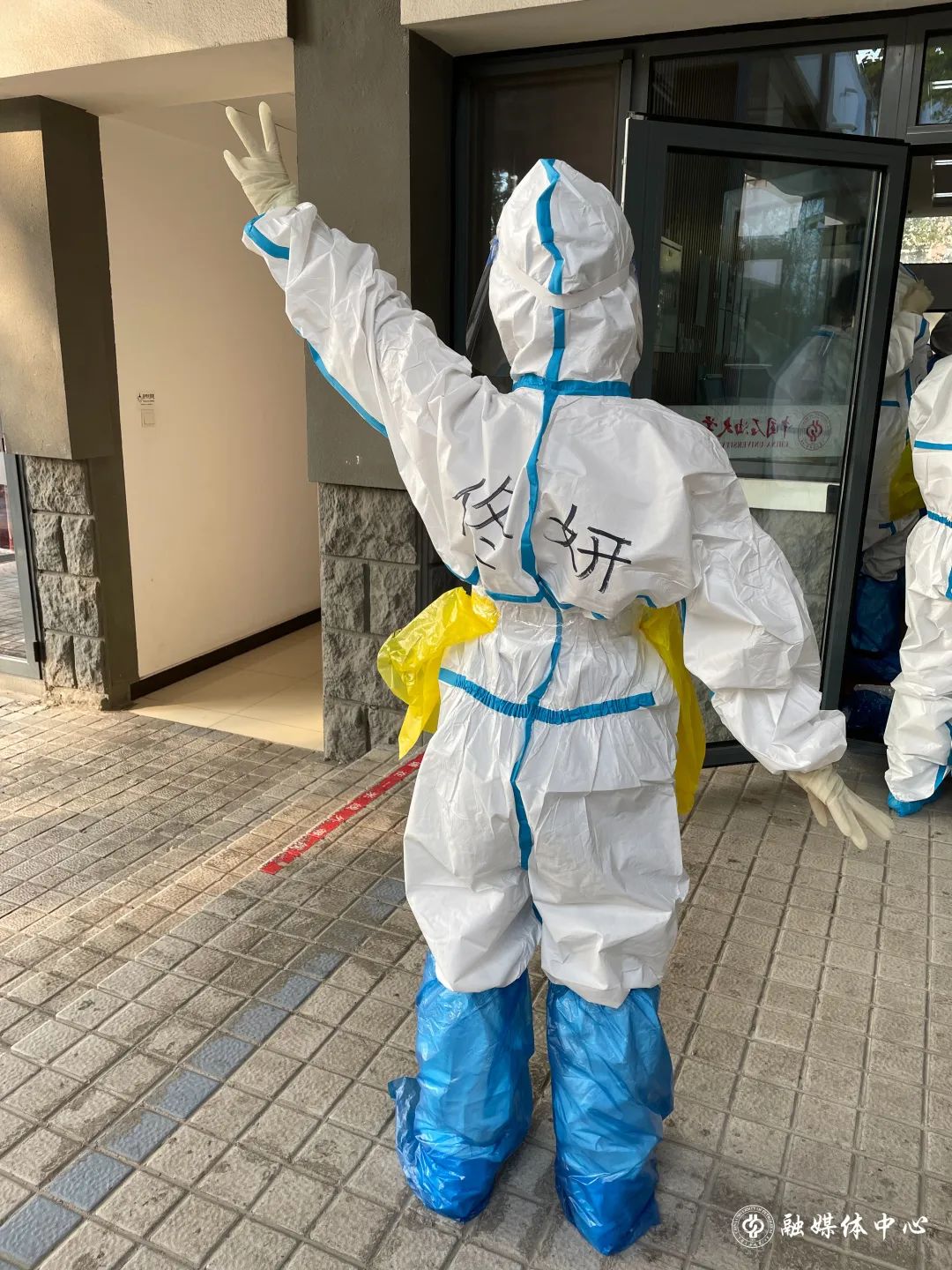地球物理学院青年教师赵振聪也承担分餐任务。穿着厚重的防护服,他每天需要20多次爬上爬下6层楼。因为没有电梯运送餐食和物资,只能靠人拉肩扛手提,仅一层楼的送餐就要在半个小时到一个小时的时间里,敲门、弯腰、递餐80余次。终于轮到送餐员吃饭了,此时才发觉,手臂已经酸痛到握不住筷子。