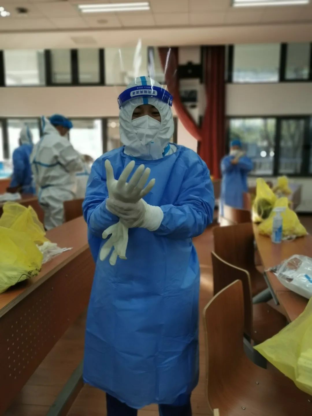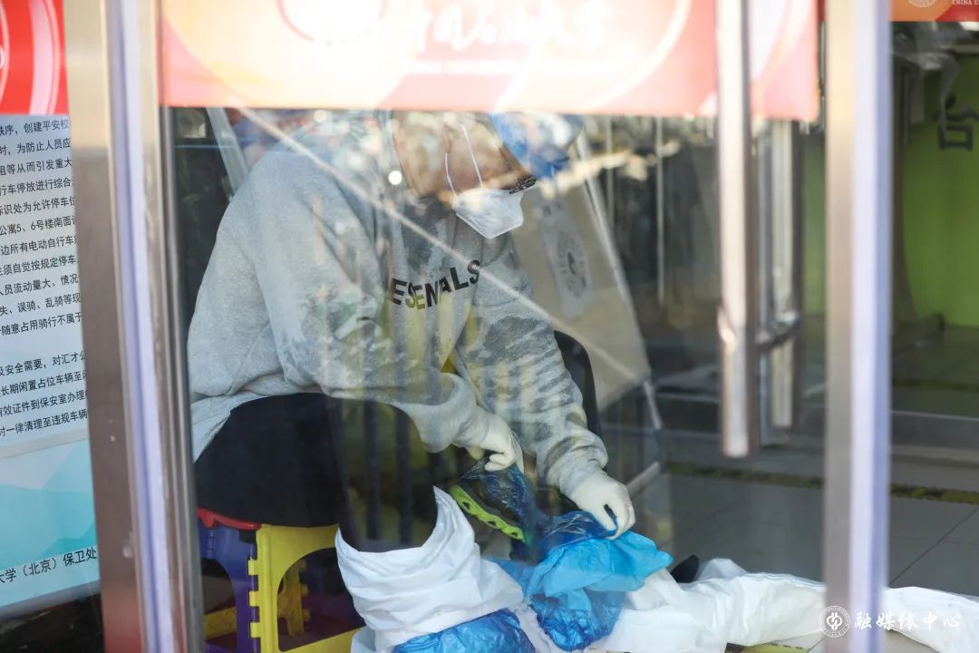 还有些志愿者协同校医院医务人员,连续为师生开展核酸检测,经常是任务一完成就瘫坐在地上,他们是真的累了。