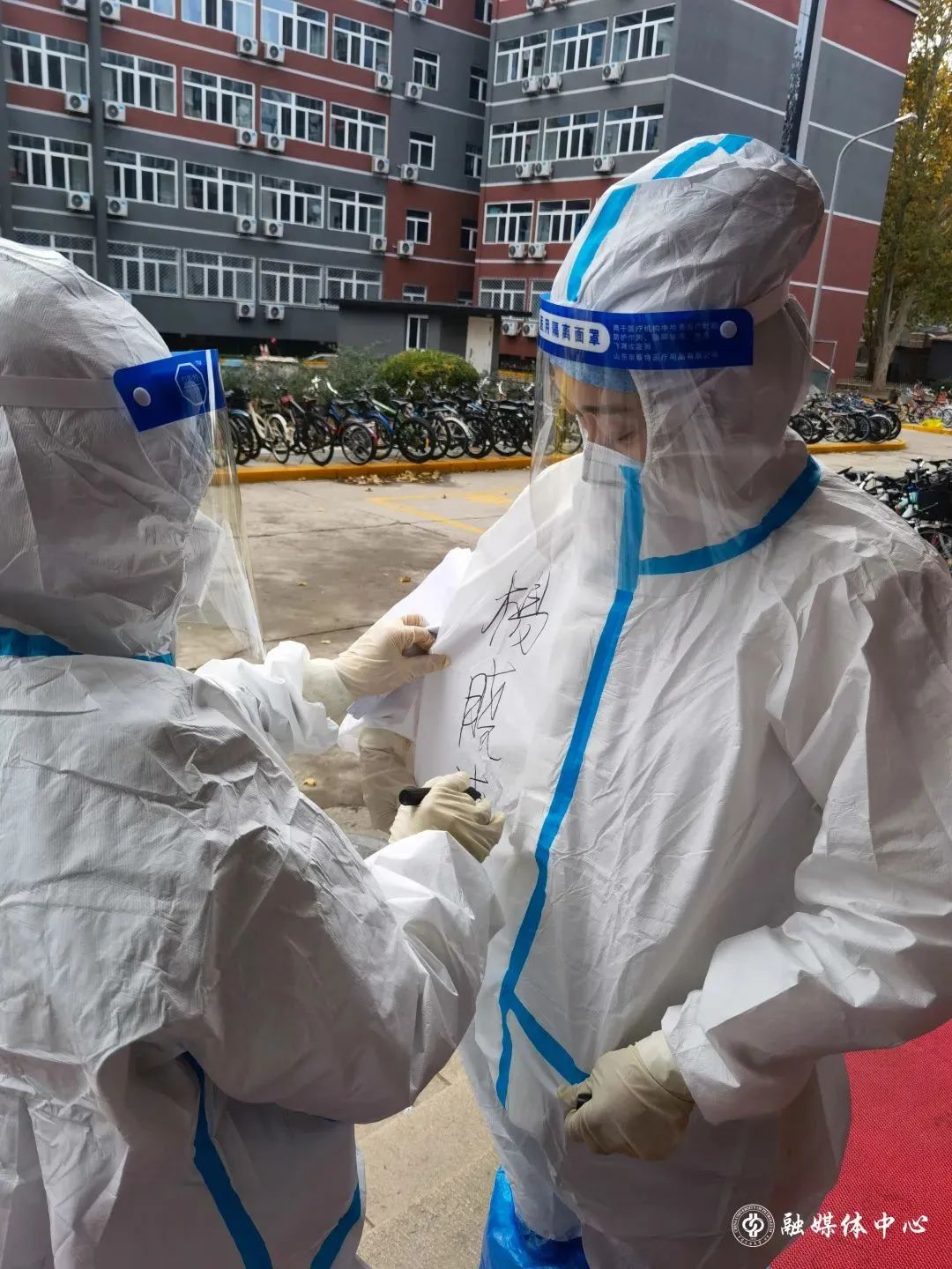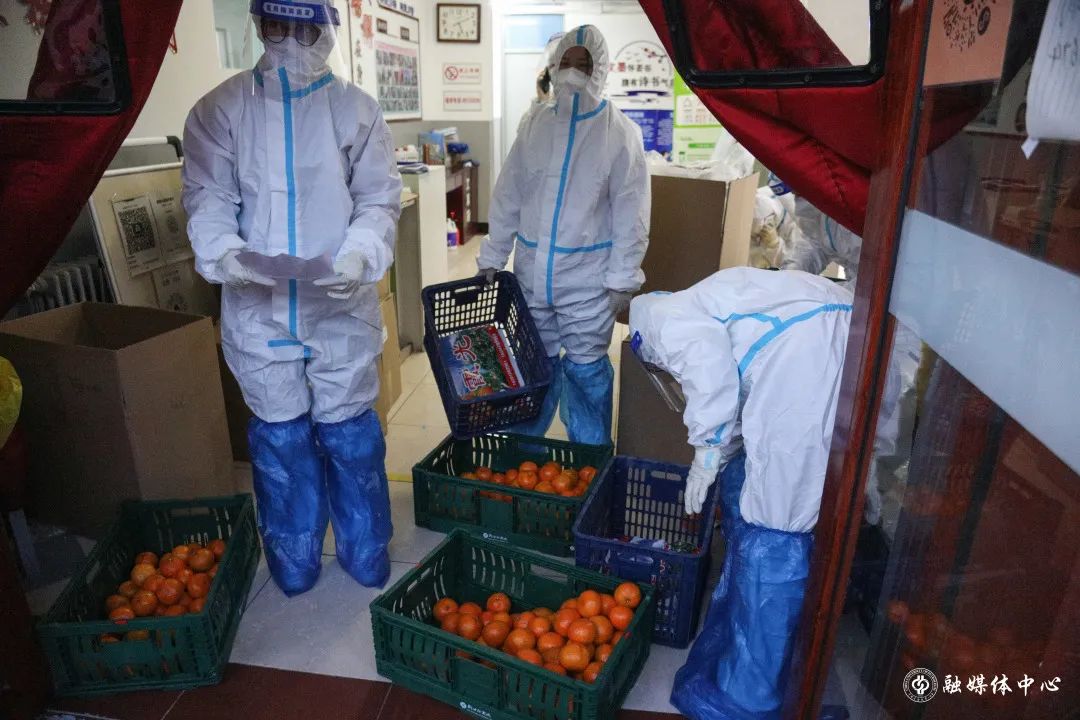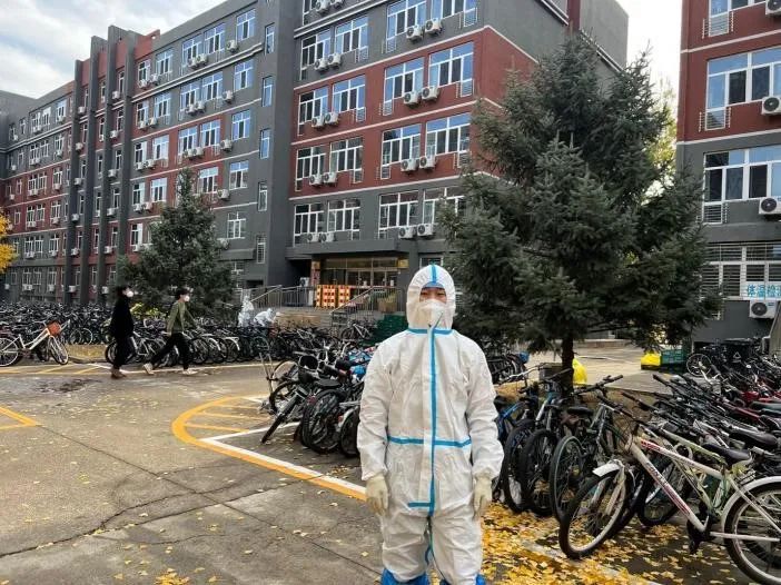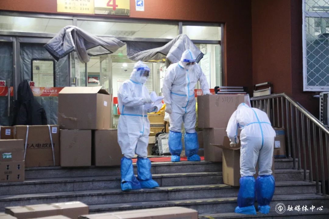 在东校园,像赵振聪这样的老师还有很多。许多党员干部主动来到东校园,为学生运送、发放物资。屋外寒风阵阵,因为防护服厚重不透气,每次送完餐衣服也已经全部湿透。一天三身汗”“很多老师都感冒了,有些年龄大的老师体力不支,就是在努力撑着,也很心疼。