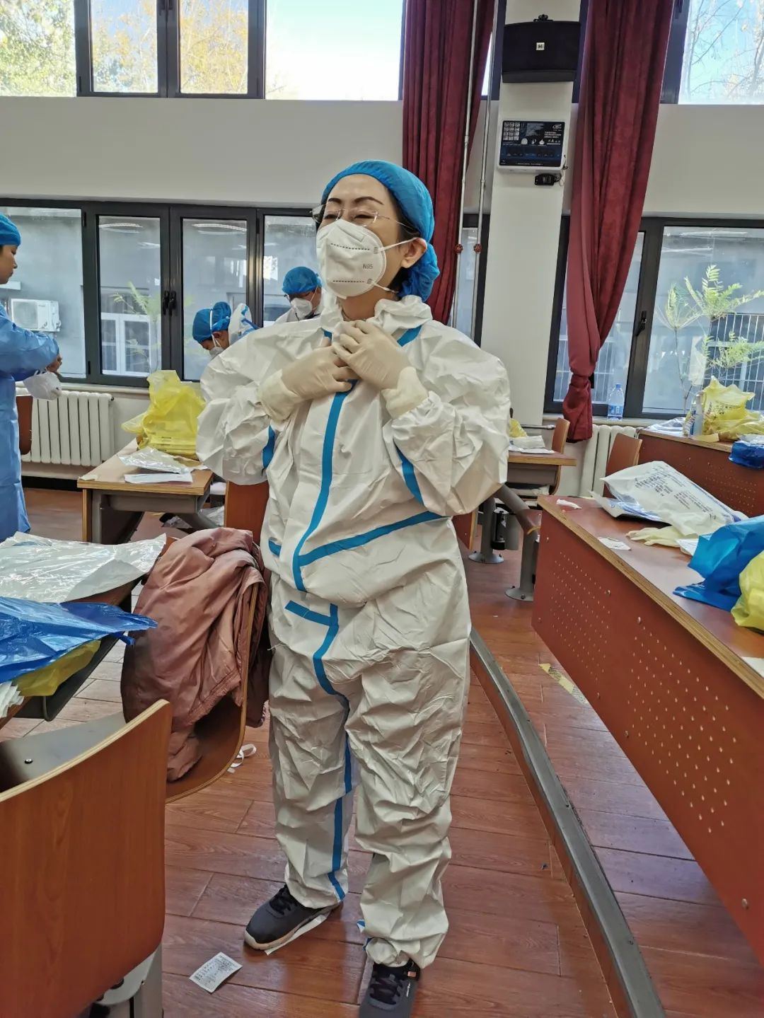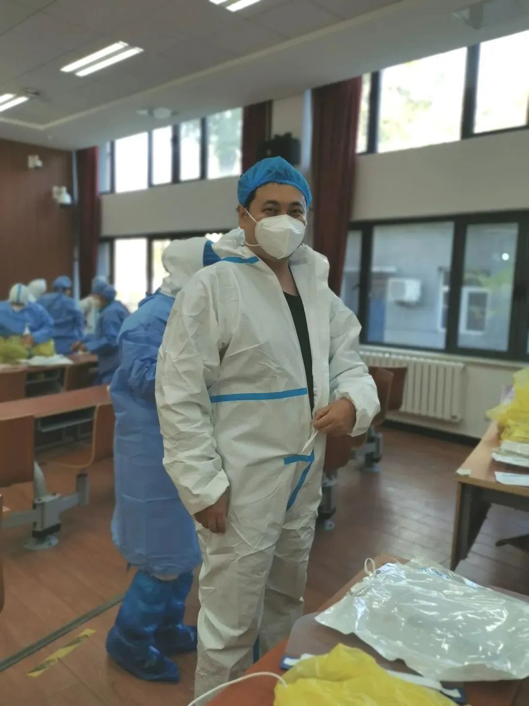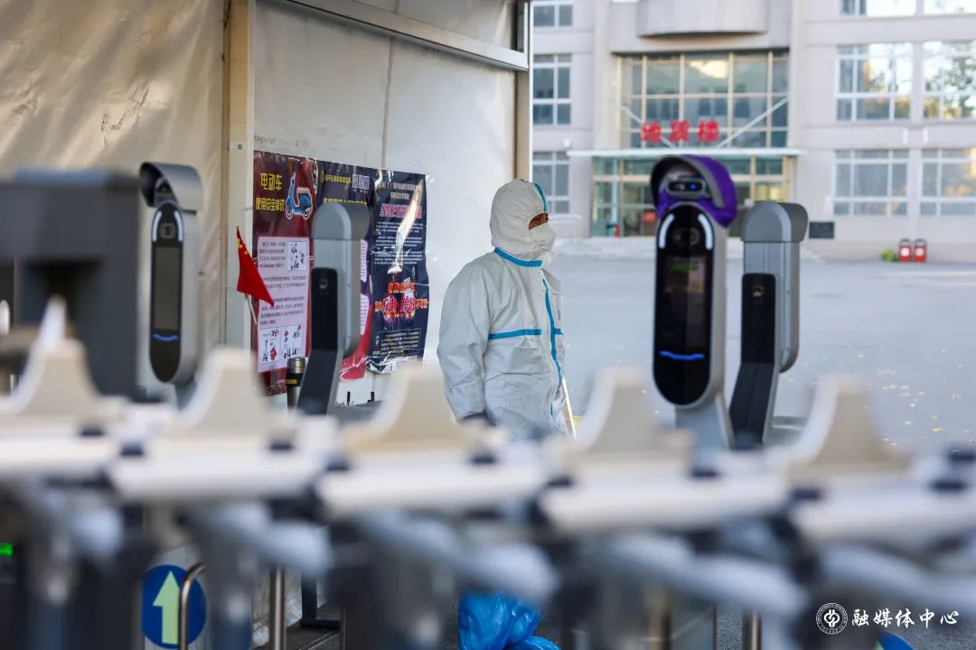校机关的佟妍老师,家里老人刚刚回到老家,没人照看孩子。得知学校突发疫情需要突击队员时,她立刻给老人买了返回火车票,当天入校加入战“疫”。