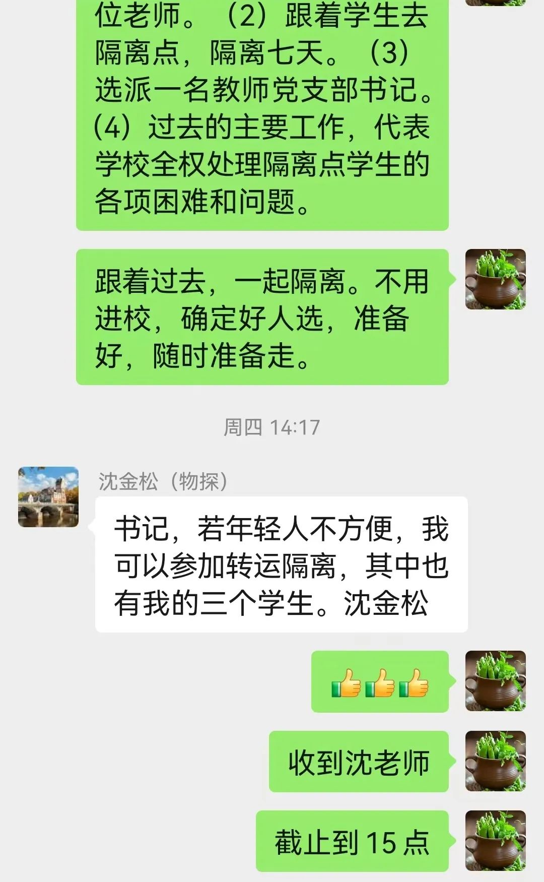 地球物理学院58岁的沈金松教授得知有学生需要转运隔离,他放心不下学生,毫不犹豫地主动请缨,与学生一起转运,随学生一起入住隔离酒店,及时传达隔离政策,协调解决学生们隔离过程中遇到的问题,努力做好学生的思想辅导,纾解学生紧张情绪。此时的教授更是学生贴心的“大叔”,在特殊时刻送上最朴素的陪伴。