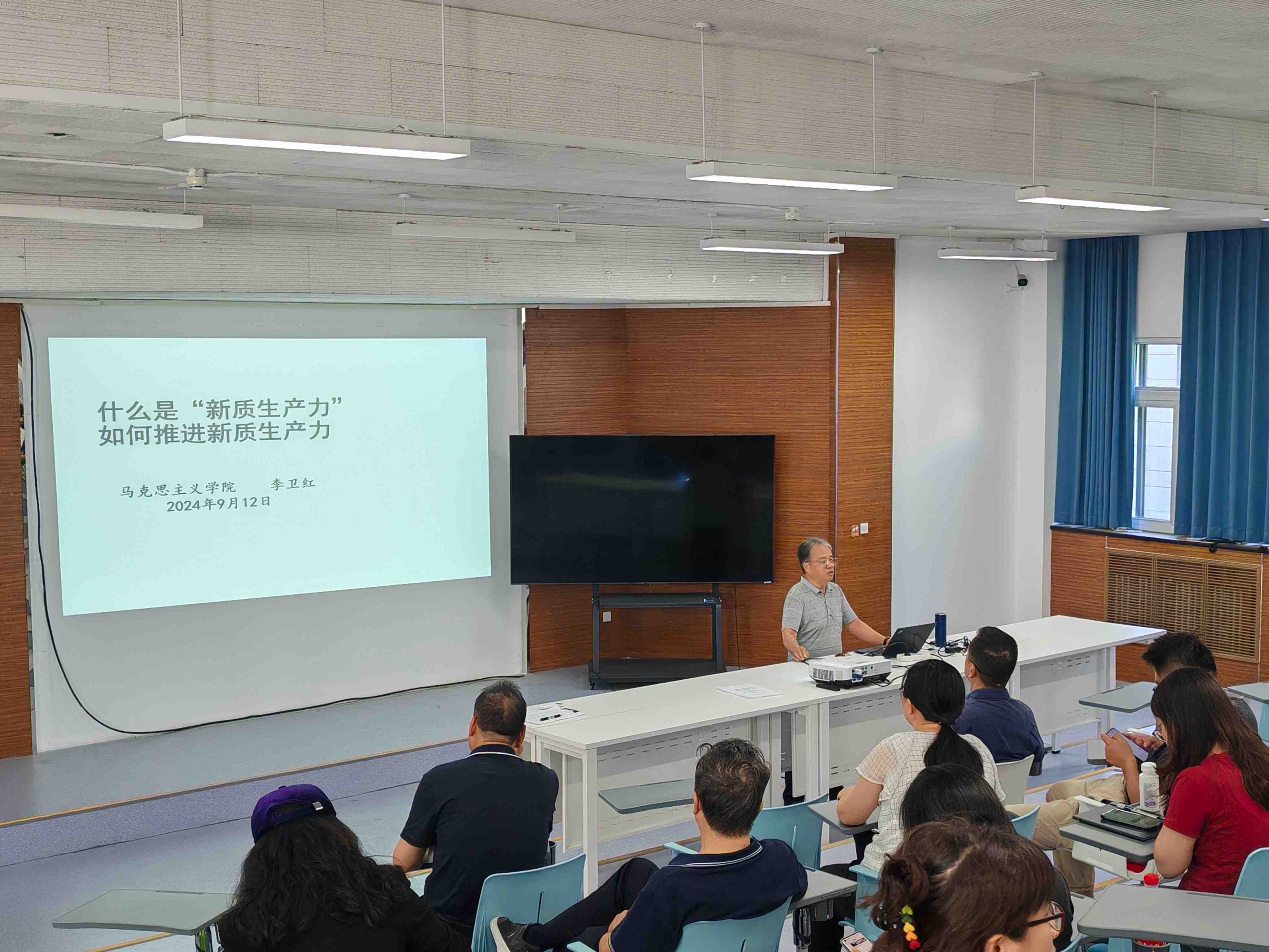 李教授首先对“新质生产力”的概念进行了详细阐述。他指出,新质生产力是指在新的历史条件下,推动经济社会发展、实现高质量发展的新型生产力。它不仅涉及技术创新和产业升级,还包括人力资源的优化配置和管理模式的创新。李教授强调,理解新质生产力的内涵,对于我们在新时代背景下提升学院的教学与科研水平具有重要意义。