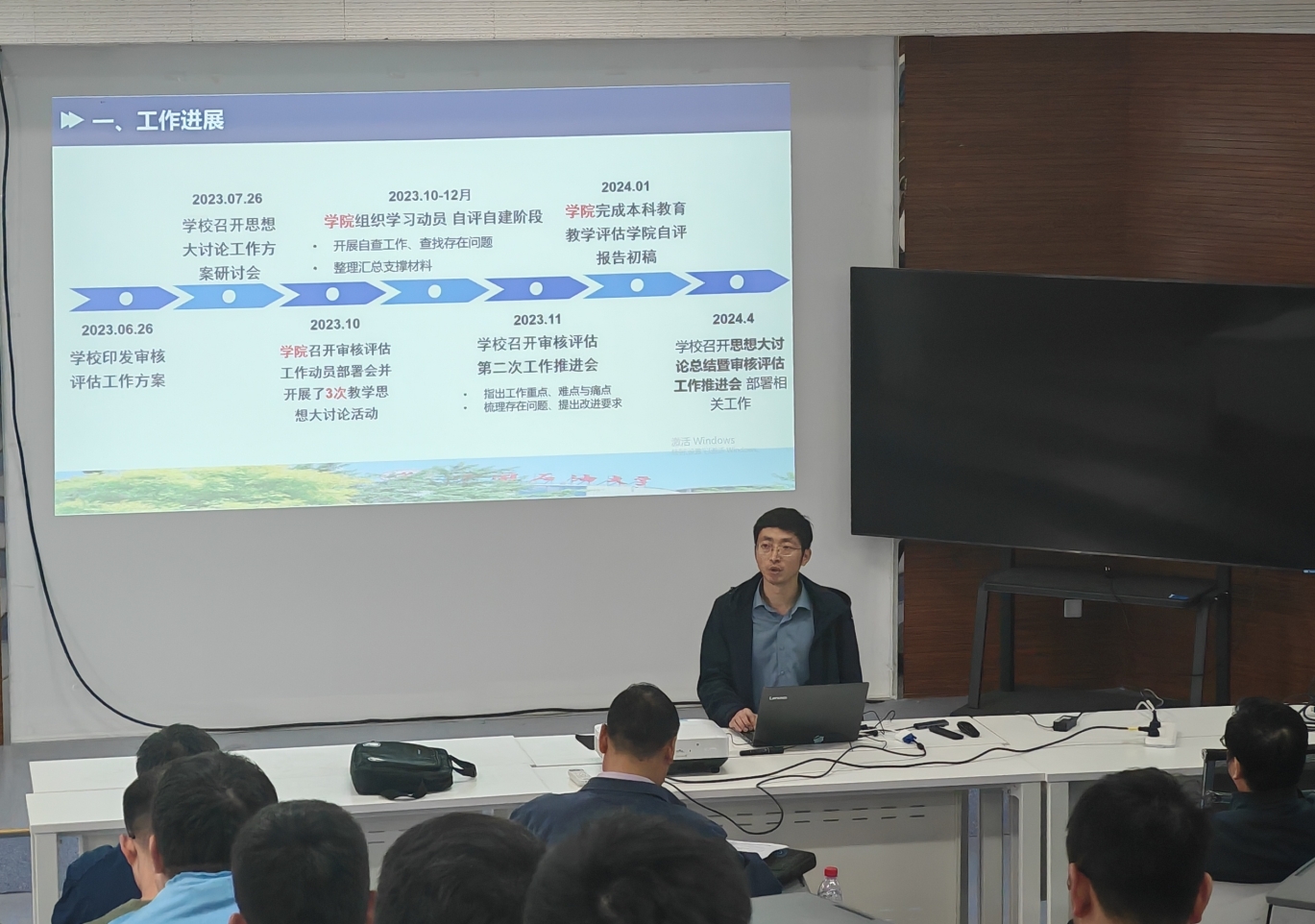 副院长郑文培对本科教育教学审核评估工作进行再次解读,传达了学校本科教育教学思想大讨论总结暨审核评估工作推进会精神,部署了相关工作;并强调,全体教师要抓准迎评工作思路与节奏,分级明确工作任务,形成全员参与、团结协作的工作模式。郑文培还对2023年学院班主任、学业导师履职情况进行了介绍。