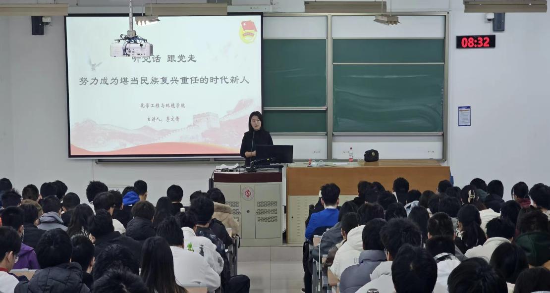化学工程与环境学院团委书记李文倩结合新时代新思想,从党史讲起,在中华民族从站起来、富起来到强起来的伟大历史进程中,鼓励同学们做有为、可为的中国青年,为同学们讲好了团校第一课。