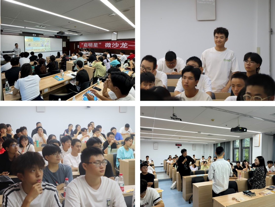 本次微沙龙以“快乐科研”为主题,传递“兴趣与热爱”,共话“坚持与成长”。刘晓惠围绕专业优势、行业前景和发展规划等方面,畅谈对地球物理专业的思考与认识,并结合自身出国交流和野外踏勘的经历,分享了科研人的“小浪漫”。她将对生活的热爱融入对科研的追求,鼓励同学们在学好专业知识的同时,培养跨学科的视野与思维,充分利用学校的各类资源,不断提升学术素养和创新能力。金国文以“学长”的身份,讲述了科研生活的“紧张”与“松弛”,鼓励同学们在循序渐进中培养科研感觉、建立科研自信、掌握科研技巧、适应科研节奏,以高效积极的状态投入学习科研生活中。