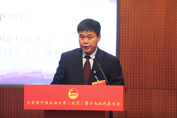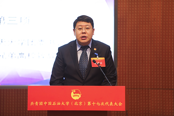 石大团委书记周玉成代表第十六届委员会向大会作了题为“不忘初心,紧跟党走,为建设石油石化学科领域世界一流研究型大学贡献青春力量”的工作报告。报告回顾了过去六年的团学工作,指出六年来学校共青团组织在思想引领、组织建设、创新实践、校园文化建设工作方面取得了瞩目的成果,围绕“凝聚青年、服务大局、当好桥梁、从严治团”四维工作格局,团结带领全校广大青年不忘初心、紧跟党走。报告对共青团今后五年的工作进行了部署和展望。报告指出,未来五年石大共青团工作将以《中共中国p站中文网站(北京)委员会关于进一步加强和改进共青团工作的若干意见》为统揽,围绕一个根本任务,聚焦两大阵地,完善三个平台,筑牢四大基石,团结带领全校广大青年不忘初心,牢记使命,向着把学校建设成为石油石化学科领域世界一流研究型大学的宏伟目标不懈奋进。